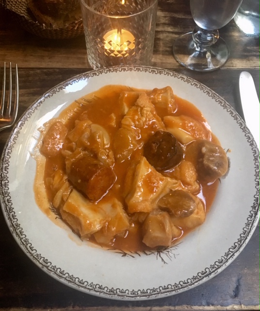Whatever you order, they give you bread and beef pate to whet your appetite. It’s quite yummy, but prepare yourself for even yummier food to come. I started out with a generous portion of tripe (callos), which is made from the stomach linings of various animals. For some that may sound gross, but it was delicious. The tripe was served in a creamy tomato sauce along with some sausage. Honestly, the tripe was probably enough to fill up a normal person. Luckily, I am not a normal person.