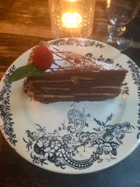 But the final dish was perfect. It was a chocolate biscuit cake that supposedly all Spanish mothers make their children. If that’s true, I give all Spanish mothers permission to adopt me. Sure, chocolate cake sounds simple, but it was so delicious; not too sweet and not too rich. No matter how much I eat, I can always make room for that fudgy treat. Also, for some reason, the chef put a candle on my cake and the waiter awkwardly said, “Uhh…happy birthday?”