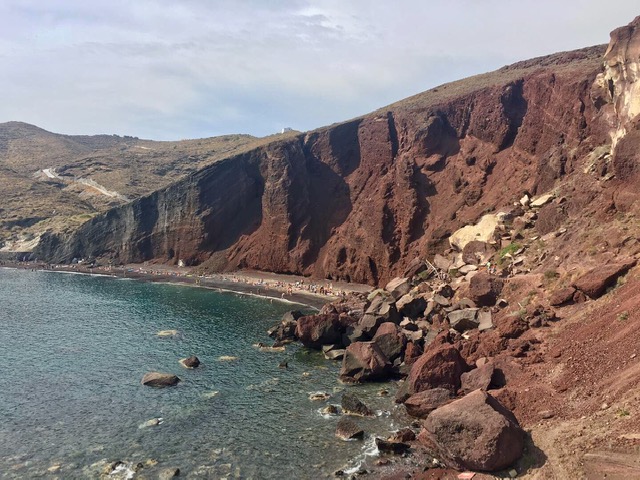 Luckily, I got a hostel in Fira, so it wasn’t too bad for me. I dropped off my stuff at the hostel and then got a bus to Akrotiri. Akrotiri is known for two things: its ruins and its beach. Greece is full of ruins of past civilizations. While in Athens, I saw plenty of ruins, so I hope you’ll forgive me for not going. The beach was calling my name.