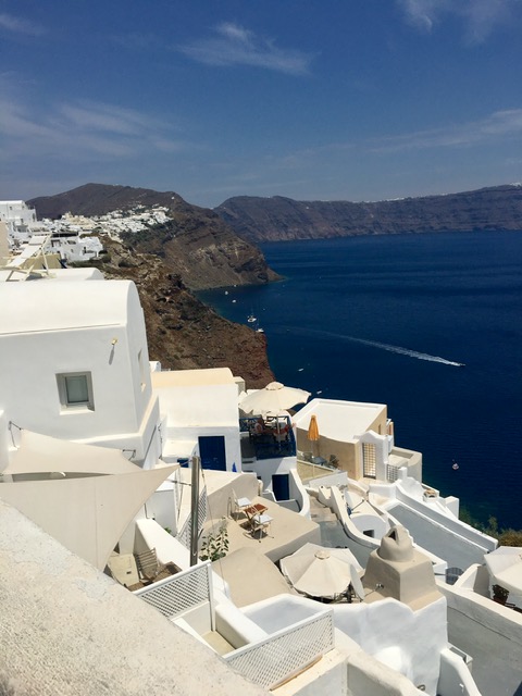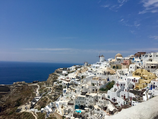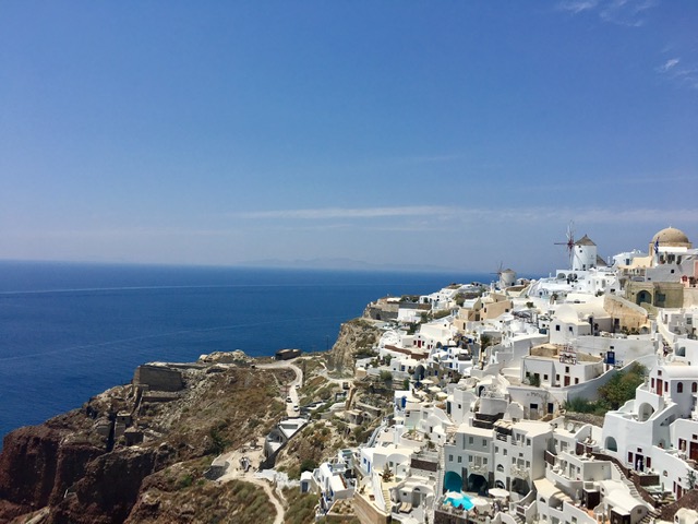 The next morning I explored more of Fira. There is a whole line of shops if you’re interested in that. But I was looking to get my daily fix of caffeine. There are several great cafes in Fira. One of them is Enigma Cafe. It’s built right into the mountainside and has a gorgeous view of the sea. No matter where you sit, you can see the water. The coffee is yummy too.