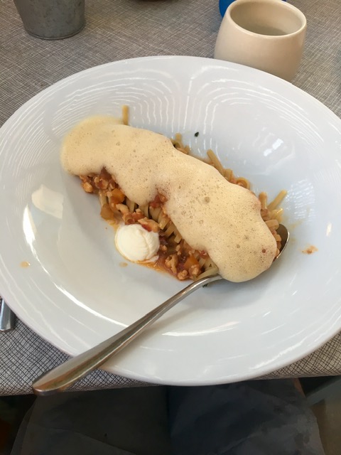 Next I had lobster linguine bolognese with basil, brown butter, and truffle foam. Although there were several chunks of lobster, their flavor didn’t overpower the rest of the dish, so other flavors could shine through. The truffle foam was a fancy touch, and it was yummy. However, the flavor was as light as the foam itself. I wish it was just a bit stronger because who doesn’t love truffle?