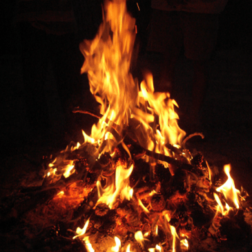 Fireflies flit Around the beckoning flames Like paper lanterns, Shimmery and gold, Floating towards the sun. You hum a labored tune Deep in your weary chest. The air is crisp, Your fingers numb. Your voice fails. Your head falls While the scorched logs Hiss, and the smoke Rises ever higher.